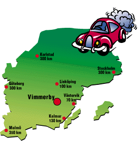 Astrid Lindgrens Värld på bekvämt avstånd från Stockholm, Göteborg och Malmö. Astrid Lindgrens Värld ligger i Vimmerby, Astrid Lindgrens födelsestad. Kommunikationerna med Stockholm, Göteborg och Malmö är mycket snabba, ca 3,5 timmar med bil. Dessutom finns veckoslutsbussar som utgår från dessa orter. Väljer man att åka tåg åker man via Linköping eller Nässjö/Hultsfred. Du kan också ta inrikesflyget till Hultsfred/Vimmerby flygplats. |