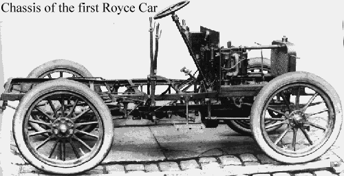 A conventional chassis carrying a two-cylinder engine of some 1,800 cc capacity. Carburation was effected by a Krebs carburettor of French design. One modification on the carburettor made sure that when idling the revs went down only so far, so that the engine continued to run smoothly. Oiling of vital parts was planned throroughly. The highest precision and lowest tolerances in fitting the engine minimised mechanical wear and noise. A silencer was provided of dimensions sufficient to reduce the exhaust noise to a nearly inaudible rustle. These precautions, in conjunction with the usual standard set for other products of the company - i.e. to accept only the best material and uncompromised craftsmanship - resulted in the very first outing of the new motor car being entirely successful. This first drive was from the factory to Royce's home and back, a distance of some 15 miles. The day was 1 April. Subsequently, all statements relating to this event referred to 31 March as being the date - to prevent any chance of its becoming associated with April Fool's Day.