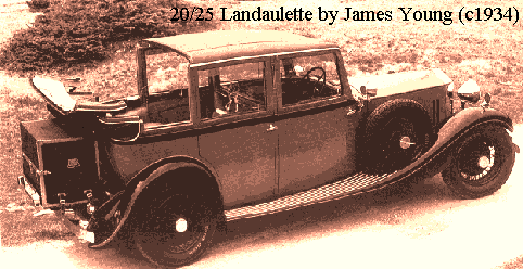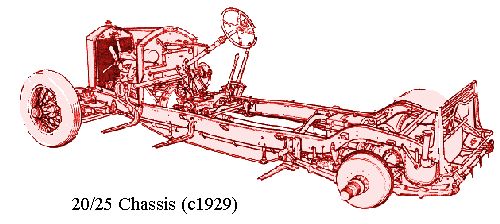 The earliest 20/25s were identical in chassis to the final production of the Twenty, the larger capacity engine with new cross-flow cyinder head being the only distinguishing feature, and the two models were produced side by side during 1929. The Twenty had by then received vertical radiator shutters like those of the Phantoms, and the 20/25 followed suit.