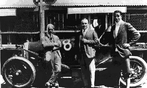 The 3 litre Bentley in the pits after victory at Le Mans in 1924 with from left to right, F C Clement, W O Bentley and J Duff
