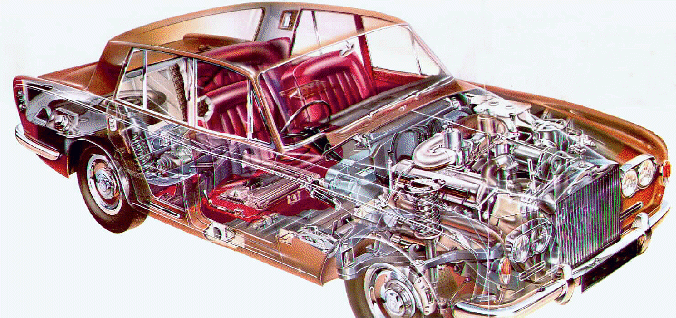 Under the bonnet the V8 engine that had been introduced in the Silver Cloud series was employed. The old four speed automatic gearbox which had been in service since the early fifties continued to be fitted, although selecting the gears had been made easier because actuating rods attached to the fear lever had given way to an electrically powered control unit.