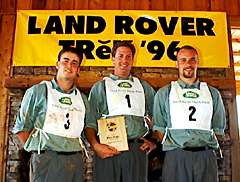 Through a combination of Land Rover product knowledge, mental and physical agility and four-wheel driving skills, Land Rover North Point teammates Brian Adams, 22; Paul Zeman, 27; and David Croot, 28, each won a pair of round-trip tickets to London on Virgin Atlantic Airlines, an event co-sponsor, and unique polished jade trophies specially made for TReK '96.