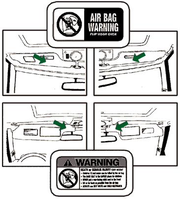 Please visit your local retailer to obtain hard copies of this information, as well as two sets of new labels for you to affix to your sun visors. Your Land Rover currently carries a notice on the face of the sun visors indicating that there are instructions for the use and maintenance of airbags on the back of the sun visors. Please follow the enclosed instruction sheet for the specific Land Rover vehicle that you own to position the four (4) labels or ask your Land Rover Retailer to install them for you.