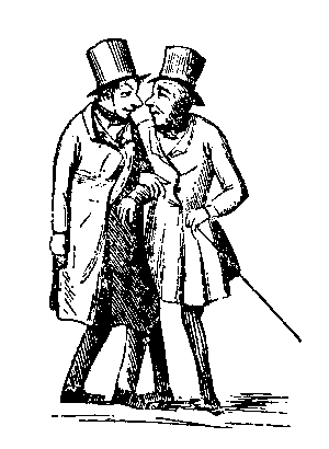 Søren Kierkegaard speaking with P.L. Møller. Cartoon by Klæstrup.