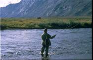 it can be done if you are patient and persistent enough. Mountain hiking and fishing Mountain hiking and Arctic char fishing is an excellent combination. And in only a few places in the world can you experience the Arctic environment as close at hand as in Greenland, where virtually virgin waters with large, old fish are spread out across the landscape. Rivers rumble and streams effervesce in remote valleys where rugged mountain tops frame the splendours. The silence is almost alarming and the air tastes strangely dry, but also pure and clean. However, before a fishing trip can be a success it must be planned thoroughly to ensure, amongst other things, that there are fish in the waters which you plan to visit. And when planning your mountain fishing trip DO REMEMBER the migration of the Arctic char! In certain rivers they do not migrate upstream after going to feed in the sea until late, and there is nothing worse than getting to the water which you expect to be full of fish - and finding not a single one! So always contact regional or local tourist offices and get information on fishing waters and good areas for mountain hiking in good time before planning the trip. The local tourist offices can help you with information and give good tips on where, when and how best to put the trip together. In recent years Greenland Tourism a/s has drawn up a number of hiking maps which may be of great assistance in your planning. With these maps in your hand it will be much easier to organise your hiking trip and prepare a precise schedule. There are hiking maps covering Narsarsuaq, Narsaq, Qaqortoq, Alluitsup Paa and Ivittuut. In 1996 maps of Ammassalik, Sisimiut, Ilulissat and Nanortalik were published. In addition, there are a number of older maps and a number of new ones in preparation that can be ordered from local tourist offices, which also provide information on any Arctic char waters, routes and other circumstances which it is useful to know about when planning a trip. However, compared with other mountainous areas in Scandinavia, Greenland's are some of the most uncharted - and this must be taken into account in your plans. For example, make sure you do not underestimate the enormous distances which exist in Greenland and which often "shrink" on a map, particularly if the scale is 1: 250 000. If the map is used correctly you can track down from home the more remote lakes and rivers which are practically untouched and seldom visited by the locals. It may be that you have to take a long trip by boat, air or on foot - but what does it matter if you have a fishing adventure to beat them all? Often you can find paths by looking for place names on the map. Many names have a meaning, for example Equalit means Arctic char and Kapisilit salmon, whilst Quinqua means a river at the back of a fjord. In this way the place names can tell you a lot about the locality. Spinning for Arctic char on the coast In the first part of the season from mid-July until the fish migrate back to the rivers you can experience exciting fishing for Arctic char at river mouths, along the coast and at the bottom of the fjords - especially in the period around rising water. The fishing concerned is, first and foremost, spinning with spoon-bait. This fishing is similar in principle to Scandinavian coastal fishing for sea trout, but fly fishermen can also join in if their technique is correct. Experience has shown that the Arctic char seldom migrate particularly far from their birth river - most are found in the neighbouring area. Often the migration of the Arctic char almost consistently follows the coast and, therefore, it can often pay to arrange the fishing at points and spits where the fish come close to land because of favourable current and feeding conditions. Investigate points, spits and reefs at river mouths particularly efficiently by wave-form casting in the freshwater leaving the river. It is in the last half of the period of rising water in particular that the fishing takes place, and often in the very shallow water. Often it can pay to wait for the fish to come past and reveal themselves at the surface - then it is just a matter of getting going with your tackle. Areas with seaweed, mussel and stone reefs which break the surface, and marked stone formations at the mouths of rivers, should be investigated particularly thoroughly. The Arctic char tend to gather in shoals - often the first couple of castings can be fruitless, but then things suddenly start to happen. Fish after fish is enticed out. When spinning you have to experiment with different kinds of artificial bait and different colour combinations and, as far a possible, use different spinning-in speeds so that the spoon looks ill in the water and entices the fish. Suddenly a fish bites; you have found the right formula, the right spoon or a good place. Early in the season the Arctic char are generally starved and prefer slightly larger mouthfuls which imitate, say, capelin and sandeel. In July/August, when the Arctic char have gradually got into better condition, they become more fussy and sometimes only go after small delicacies such as prawns or small crustaceans. All-round equipment used for river fishing is excellently suited to coastal fishing for Arctic char but, at times, a rod of 8-9 feet (240-270 cm) is necessary in order to get a sufficiently long cast and in order to be able to control the artificial bait properly because of waves or wind on land and along the coast. Artificial bait with a lively movement that can go high in the water even with slow spinning-in is required. Amongst the best spoon-baits are: Jensen Tobis, Flipper, Møresilda, Filur, Toby, Jensen Pink, Trumf and similar lean and "scuttling" types in weight categories from 3-12 grams. Spinners must also be used busily; for example, Vibrax size 1-3, Mepps Aglia and Black Fury 1-3, Panter 7 grams, Jensen Insect 7 grams, the Mrrum spinner and Droppen 3-12 grams, as well as the others