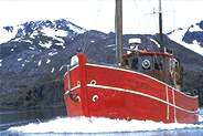 in unpolluted Arctic waters make Greenland an eldorado for sea-anglers. Sea-fishing tackle By far the majority of angling in the sea off Greenland takes place with a jig of 150-400 grams. It is important to have strong tackle: 20-50 pound rods and multiplier reels such as Ambassadeur 10 000, Penn or Shimano reels of the same size, which can hold at least 200 metres of 0.60 mm nylon line. The above type of reel is robust and must be equipped with brakes that are in tiptop condition, because the brake on the reel must never thrash or function irregularly when exposed to even traction. If this is the case, the brake disks should be replaced or the reel overhauled. The sea-fishing line must be either 0.50-0.60 mm nylon line or 30-70 pound Dacron, or spun line as it is also known - or the new Kevlar line is an even better choice. The advantage of the spun line and Kevlar line is that it is hardly elastic at all. Even when fishing in a depth of 150 metres you have as much "fingertip feeling" with the jig in the water as if it were just under the keel. Nylon line, on the other hand, is elastic and actually gives a lot - 20-50%. For this reason it is difficult to feel the cautious nips when fishing in depths of over 50 metres. Some sea-anglers prefer to use fully drawn steel wire line, but this is only necessary in depths of over 150-200 metres. The wire is very thin in relation to its strength and is therefore barely caught by the current. Moreover, it is entirely inelastic and does not give an inch, so you always have good contact with the bait at the end of the line. The problem with steel wire is simply that it has a tendency to kink - and, if it does, the wire breaks very easily. Whichever type of line you prefer, take along extra line, e.g. 300-500 metres, from home so that the line on the reel can be replaced if necessary. Nylon line is not sold everywhere in Greenland and it can be difficult to get precisely the line thickness you are looking for. Most marine fish off Greenland are not particularly fussy about what is on the hook, but silver and colour-radiating jigs rarely fail. Jigs are sold in many places locally, but they are relatively expensive and can easily cost DKK 90-120 each. And although a jig is fairly heavy in your luggage, expect to lose a couple of jigs on each day trip. It is therefore recommended that you take a good arsenal of jigs of 100-400 grams with you to cover the fishing you may encounter. It is rare to need a jig of over 300 grams and in most fjords there are no problems "holding" the bottom with a 200 gram jig and knowing you are fishing there. Only in the most powerful period of tidal change will you need a jig of over 300 grams in order to fish at the bottom, where many predatory fish tend to stay when the current is at its strongest. It is always a good idea to change the hook on the purchased jigs for treble hooks of size 6-8/O. These hooks are solid and can cope with harder stresses and that is useful, particularly when a halibut is in your sights. Remember hangers in your tackle box - and use them well. In Greenland hangers can be used for most sea fishing - with or without bait. Norske gummimak, Red Gill, lyskroge, Eddystone Eel and the like are excellent and provide an extra chance of success but, since in Greenlandic waters really big fish are possible, you should not fish with more than one or, at most, two hangers. If a double cod of 2 times 10 kg is hooked, such a dynamic duo is more than difficult to get to the surface even for the most experienced sea angler. Many people choose to fish with a baited hanger. A strip of sea scorpion, cod or other fish is placed on the hook so that the exposed meat moves freely in the current after the jig. A strip of meat of 5-15 centimetres is cut out of the fish used for bait. The strips must be pointed and thicker at one end than the other so that the piece of bait looks almost like a pennant. The thick end of the bait is placed firmly in the treble hook of the jig. The strip of fish will dangle in the water like a tail and attract fish to the jig, not only through its busy movement in the current, but also through its aroma. This method of fishing is very widespread and is a well-known trick used frequently by local snell and handline anglers. A rod belt is not necessary but it is still good to have one with you in your luggage in case a 100 kg halibut is on the warpath. Sea-fishing at depths of around 40-80 metres can be demanding and heavy and here it can be convenient to use a rod belt - not least, because the groin gets rather sore after a few hours' fishing. A tackle box is essential for the sea angler. Firstly, it gives you a secure place to keep your jigs, hangers, swivels, line spools, pliers, knife and other bits and pieces. Secondly, you can find what you need in a flash. On major fishing expeditions at sea there is always a tendency for things to disappear just when you need them. If tackle and bits and pieces have a permanent place in a box they are easier to find - at least in theory! Remember warm clothing. The weather in Greenland can change a great deal and very rapidly, not least at sea: from summer and sunshine to winter weather in less than an hour! On some summer days you can fish in short sleeves up to midday, but then suddenly in the afternoon it becomes so bitingly cold that you have to put on a jacket, thermal clothes and a coat. On your top half it is best to wear several layers of thin clothing rather than a thick sweater since the air between the layers provides insulation. Thermal clothing and fibre fleece are ideal for the purpose. No only do they take up no more room than ordinary clothes in your luggage, but they also keep you warm much better. Wool or cotton sweaters have the same insulating properties. In addition to two or three layers of clothing underneath it is usually worth having rainwear with you, firstly because it is wind-tight and watertight and, secondly, because it d
