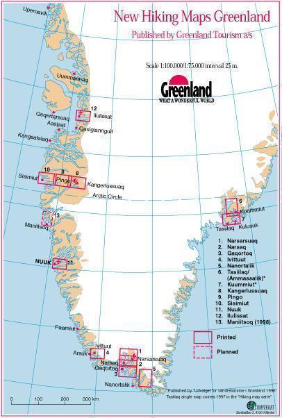 Scale: 1:100.000 (Ivittuut and Nuuk scale 1:75.000)