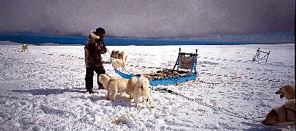 Camp Ice-CapDog sledge tours.As a quite exceptional offer we can now offer you a tour by dog sledge on the inland ice cap itself. The ice cap has an area of 1,799,850 square kilometres and covers 82% of Greenland. A group of hunters lives on the Camp through the whole summer and their dogs and sledges are ready to bring you up on to the inland ice cap so that you can get an impression of what Greenland is like in the winter. Skiing. When you have enjoyed the sledge tour it is possible to let your own body handle a physical challenge by hiring a pair of cross-country skis. The ice cap offers a near-perfect, flat cross-country skiing landscape which is enormous in extent. Walks. The area around Camp Ice-Cap offers rich opportunities for walking.If this is your first visit to the "real" wilderness you can experience the silence and peace of arctic nature in the reassuring company of experienced guides.Are you already and experienced mountain walker heading for new challenges, Camp Ice-Cap is a perfect starting point for walks or cam be a good place to stop, overnight and stock up before you continue your journey. Angling. Fly fishing or spinner fishing for Greenlandic Trout has been well-respected in angling circles for many years. Camp Ice-Cap is in the immediate vicinity of a number of good angling waters and if you do not have your own equipment you can hire fishing rods etc. at Camp Ice-Cap. Camp Ice-Cap. Camp Ice-Cap can be reached by helicopter, by boat or on foot and your stay at the base can last from half a day to 14 days.Overnight accommodation at the Camp is either in heated expedition tents or in cabins, and all meals are provided. |