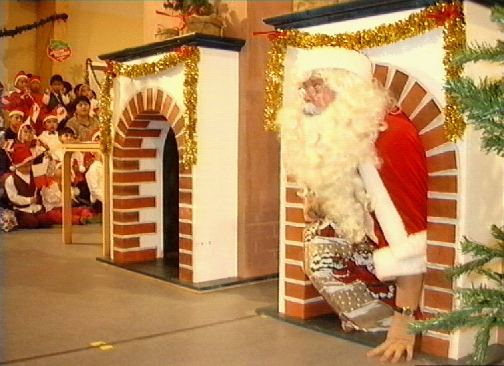From the Santa race: A Santa climping out of the chimney