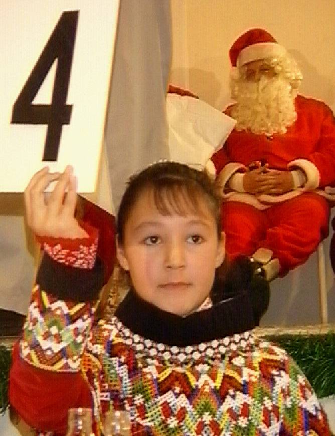 Greenlandic girl in national costume, casting her vote in the panel of judges