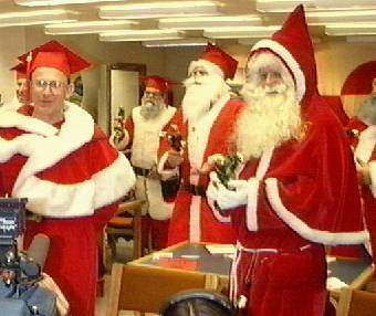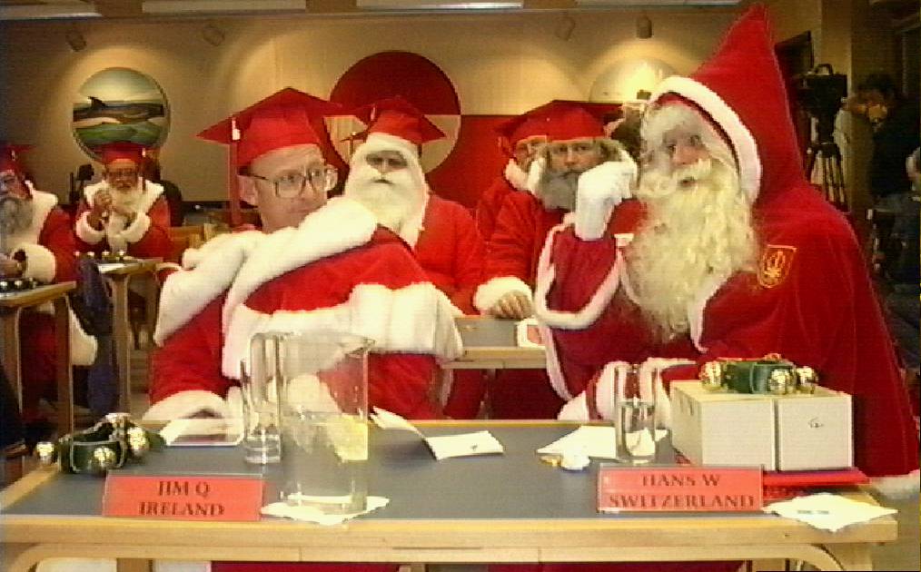 Santa Students in the classroom. Santa Jim Quinn, Ireland, and Hans Ernst Weber, Switzerland, in the foreground