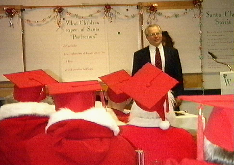 Santa Tom Valant, USA, lecturing in front of his Santa Student