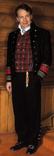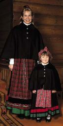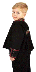 PIKE Stakken på pikedrakten er svært vid og nesten rundskåret, det brede opplegget nederst blir skjult av de røde og grønne bordene. Det brede beltet i livet er sydd på stakken av praktiske årsaker og kan reguleres i vidden med hekter midt bak. Selene skal både på pikedrakten og guttedrakten være krysset i ryggen, og har lange ender slik at knappene kan flyttes nedover etter hvert som barnet vokser. Vi laget knepping på barneforkleet for at viltre barn skal se litt "ryddige" ut! Hodeskjerfet er en vrangsydd remse med ståltråd i til å vikle i knute på toppen av hodet. Pikedrakten har en søt, kort cape som hører til, med sort fløyelskrage og knapper midt foran. Til pikedrakten kan du sy eller kjøpe ferdig skjorte med nupereller. DAME Stakken er også svært vid på damedrakten, livstykkene er imidlertid i viskosefløyel av god kvalitet. Selene skal også her krysses i ryggen. På damedrakten lagde vi derimot løst belte og løst forkle med lange knytebånd som skal henge ned foran. Denne gangen brukte vi samme stoff i dameforkleet som i herrevesten, men du kan også få dette forkleet i samme stoff som pikeforkleet og gutteskjerfet. Det brede beltet skal sitte fra livet og opp over ribbeina. Til damedrakten kan du få skjorte med nupereller og "hodetørkle" med ståltråd i, samt en sort, fôret cape med fløyelskrage. F&Bs FESTDRAKT OGSÅ TIL FAR Til herre har vi laget en vid bukse med legg øverst, vanlig linning med beltestropper og rette ben med pynteklaff med knapper nederst i sidesømmene. Vesten er av godt norsk ullstoff, dobbeltspent og med lomme til bestefarsklokke. Både herrevesten og jakken er inspirert av uniformsstilen som ofte går igjen på norske mannsbunader. Jakken har vanlig isatte ermer med brede mansjetter av båndene som går igjen på såvel barne- som damedrakten. Sort speilfløyelskrage gjør jakken festpreget, og de lange knapperadene er hentet fra uniformsjakkene. Herrejakken har et stort dobbeltlegg midt i ryggen toppet med to av bordbåndene. Som vanlig kan du kjøpe både mønster og alt materiale fra oss, samt ferdig sydde drakter til både barn og voksen. Ett år - og tolv år, festdrakten er like fin til begge to! Draktene er laget slik at barna kan vokse i dem. [Fra bladet] [Interaktiv] [For barn] [Tilbake til hovedsiden] © 1997 Foreldre & Barn |