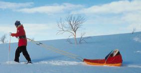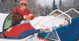 Med pulk i sporet Vintereventyr, ja! Men på barnets premisser. Med minstebarnet godt og varmt plassert i pulk er du på tur for trivselens skyld. Litt trening bør du ha om du skal trekke pulk. I alle fall bør du ta noen treningsturer med tom pulk først, slik at du vet hvordan det oppleves å dra en pulk. Helst bør dere være to, den ene trekker og den andre går bak og holder øye med barnet. Husk at humpete, svingete og ruglete løyper gjør turen ubehagelig for barnet. Velg helst løyper du kjenner fra før. Det er kaldere langs bakken enn på høyde med voksne skiløpere. Vind øker også kuldegradene. Ekstra skumplast i bunnen av pulken isolerer og demper mot støt. Bruk skinnpose, tepper og varme klær rundt barnet. Sjekk med jevne mellomrom at barnet ikke fryser. Er hendene varme, kan du være trygg. På varme soldager kan det motsatte være tilfelle. Hvis barnet kjennes varmt og er klam i nakken, må du regulere påkledningen. Vindskjermen beskytter mot trekk og sollys, likevel må du huske å smøre barnet med god krem. Husk også gode solbriller, helst slike som dekker godt for sidelys. Og ta hyppige pauser, slik at barnet får komme ut av pulken og kan bevege seg fritt. Er pulk farlig? Det har skjedd fatale ulykker med barn i pulk. Vi vet at et barn frøs i hjel for noen år siden. Det har også skjedd at barn er blitt kvalm av småristingen, slik at de har kastet opp og er blitt kvalt i eget oppkast. Men det er skrekkvisjonen. Faktisk har vi registrert veldig få skader med pulk. Hvis du bruker en sikker pulk og følger rådene som gis, kan du nok trygt legge ut på tur med barnet i pulk, sier Brit Kjølner ved Statens institutt for folkehelse. Hun understreker imidlertid at turen må skje på barnets premisser: - Jeg har møtt mange barn som slett ikke husker pulkturene med glede. En jente sa en gang til meg at hvis hun fikk barn, så skulle det i hvert fall ikke behøve å sitte i pulk. Vi gir altså ikke barna naturglede og trivsel når de befinner seg i pulk hvis vi ikke har barnets ve og vel i fokus hele tiden. Barn under seks måneder bør ikke ligge i pulk. Barn bør heller ikke ligge i pulk når temperaturen har krøpet under 10 minusgrader. Barn skal heller ikke ligge i pulk når de er syke eller hvis de har lett for å brekke seg. Start aldri turen rett etter at barnet har spist. Pass på! Alle modeller produsert etter 1985 skal oppfylle sikkerhetskravene som gjelder. Pulken skal være merket på en måte som viser om retningslinjene er fylt. Skroget må ha tilstrekkelig lengde og bredde og en profil som gjør pulken stabil. Meier er nødvendig for styring på hardt underlag. Skroget skal være glatt uten utstikkende detaljer. Pulken skal ha en innredning som gir god isolasjon. Form og volum av skroget bør være slik at barn opp mot fire år kan ligge utstrakt i skinnpose eller annen varmeisolerende pose. Draget har mye å si for bevegelsesfriheten til skiløperen. Velg lange og spenstige skjeker - det skal utgjøre en solid og smidig forbindelse mellom barnepulk og pulkbrukeren. Polstret belte som glir lett mot skiløperens klær anbefales. Drag med skulderreimer vil bety ekstra sikkerhet i tilfelle beltespennen åpnes utilsiktet. Pulktrekket må slutte godt om barnet både i sittende og liggende stilling. Trekket skal være vindtett, vannavstøtende og forhindre kondens ("pustende"). Setet skal gi god støtte for barnet både i kjøreretningen og sidelengs. Ryggen må være høy nok til å gi barnet hodestøtte i sittende stilling (minst 50 cm). Setet må ikke være til hinder for at barnet plasseres liggende. Det bør også ha regulerbar skråstilling, være flyttbart i forhold til vindskjermen og være solid festet i skroget. Underlaget i pulken skal være utstyrt med isolerende matter som ikke opptar fuktighet. Sikkerhetsselen skal hindre barnet mot å falle ut av pulken ved ukontrollert kjøring. Selen må ha et godt feste og kunne overføre trykkbelastning til brystet uten fare for struping. Barnet må fortsatt ha en viss bevegelsesmulighet når det sitter fastspent. Vindskjermen skal ta av for vær, vind, snøsprut, greiner, stavpigger og UV-stråling. Materialet i skjermen bør være uknuselig. Den bør kunne skråstilles, samtidig som den er vindtett festet til pulktrekket. Verneutstyr ved kantring. Pulken skal være utstyrt slik at barnet beskyttes mot skade ved for eksempel uforutsett velt. Den skal også være utstyrt slik at den beskytter barnet mot ytre farer som fall over pulken, piskende grener, løse skistaver og lignende. Slepelinen er til hjelp i krevende situasjoner i utforbakke der det er fare for skrensing eller kantring, eller der det trengs hjelp til å bremse. Pulken skal ha solid feste for slepeline i skroget akterut. Slepelinen skal kunne fjernes når den ikke er i bruk. Linen skal være fem meter lang, glatt og uelastisk. Den bør ha farge som synes mot hvit snø. Tips for bedre sittestilling. Små barn i glatte sitteposer kan lett gli fremover i pulken. Dette unngår du ved å legge litt tøy eller lignende under knærne til barnet. Det gir en stabiliserende forhøyning, som vist på skissen. LITE MARKED Du må regne med å betale 4000-5000 kroner for en komplett barnepulk, men det lønner seg å sjekke prisene. Vi fant pulker av samme merke til i underkant av 4000 kroner både i Oslo og i Tromsø, mens de koster 4700 kroner på andre utsalgssteder. Alle pulker som selges i Norge, skal følge gjeldende sikkerhetsforskrifter. Sports- og barneutstyrsbutikker forhandler stort sett bare Fjellpulken, men Lapplander omsettes også. I fjor kom dessuten Norpulken, en ny norskprodusert pulk på markedet. Ved å ta i bruk et hjulsett som tilleggsutstyr, kan Fjellpulken nå brukes året rundt. Fjellpulken har også spesialpulker, blant annet handikap-pulk. Også Norpulken har spesialpulk for funksjonshemmede. Sist år lanserte Lapplander søskenpulk/tvillingpulk. Det er en bredere pulk der barna sitter ved siden av hverandre. Ett av rygglenen