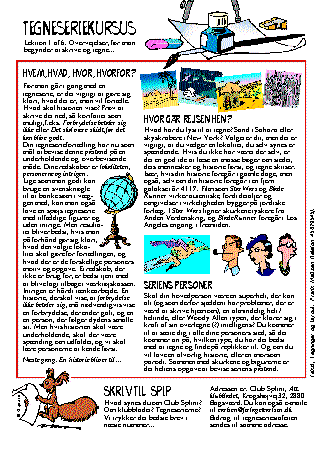 I de første 6 numre beskriver Frank Madsen (Kurt Dunder) i detaljer, hvordan man laver en tegneserie. Første afsnit handler om, hvad man skal tænke på, før man overhovedet går i gang med at skrive eller tegne: Hvad skal serien fortælle, hvor skal den foregå og hvilke opgaver har de forskellige personer? Og så er der naturligvis en brevkasse, der redigeres af Spip.