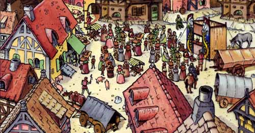Joff og Elena klarer dagens forestilling alene, så Sashia har tid at gå på markedet... - Ofte kan man møde bekendte blandt de andre tilrejsende...
