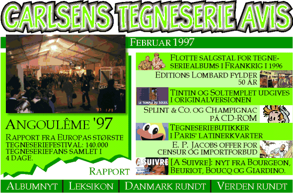 | Hergés Tintin | Steen og Stoffer | Carl Barks | Danske tegneserier | Europæiske tegneserier | Amerikanske tegneserier | Køb, salg & bytte | Anmeld en tegneserie | Seriejournalens gæstebog |