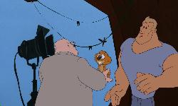 Tag ham ind i filmstudiet og gør ham klar til optagelse.