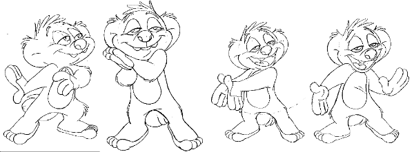 FigurdesignNår man laver tegnefilm, kan man af naturlige årsager ikke gå ned på gaden og vælge de skuespillere, som skal bruges i historien - man er nødt til at skabe dem selv. Det kaldes figur-design. Figur-designet begynder, når manuskriptet er færdigt, og det handler ikke kun om, hvordan figurerne skal se ud. Det er vigtigt at give de forskellige figurer deres egen personlighed, så man tror på dem og forstår det, de gør. Tegnefilm-figurer er ikke blot tegnede figurer. De ser forskellige ud og opfører sig - ligesom mennesker - meget forskelligt. Herunder ser I nogle forskellige figurer fra filmen. Prøv at beskrive dem med ord som: ond, sød, hidsig, skabet osv. Hvad er det på tegningerne, der får dem til at se onde ud? Prøv selv at opfinde nogle tegnefilm-figurer, der er gale, nuttede, sjove, eller noget andet.