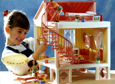 There are six different dolls in the various sets - a father, two mothers and three teen-age daughters - between 14 and approx. 17 cm tall. The dolls' limbs can be moved in a lifelike way. Their arm and leg joints are flexible and they can hold things in their hands. The girls have lovely hair and the dolls are easy to dress and undress. There is also a baby and some of the sets contain household pets - a cat and her kittens, for example.