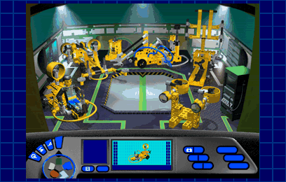 In this room you can build five exciting smaller models. By clicking on the models you can see their different functions. The model that you choose will show up in the information display. Then you can choose to build the model or to see a secret tip. Each model contains at least one handy building tip, which you can use when you construct your own LEGO TECHNIC models. |
