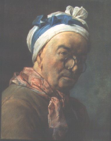 Chardin Self-Portrait with Spectacles 1771 Pastel, on grey/blue