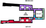 building: Denon, to the south, along the Seine; Sully, to the east, around the
