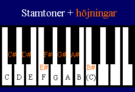 Dessa 7 toner - C D E F G A B kallas för stamtoner och är grunden för vårt notsystem.