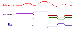 Mycket musik "ser" ut på det här sättet med melodin för sig och harmonierna som delas upp av ackordsstämmor + en basstämma.
