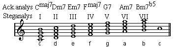Sättet att ge namn åt ackorden kallas steganalys eftersom man utgår från skalans olika steg.