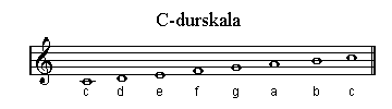 | Man utgår från durskalan, t. ex. C-dur. | |