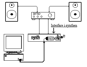 ljudsynthens "midi-host"-utgång med en av datorns seriella portar.