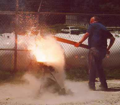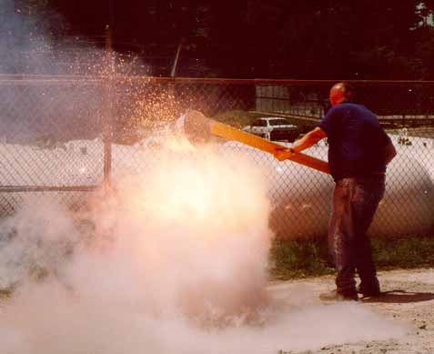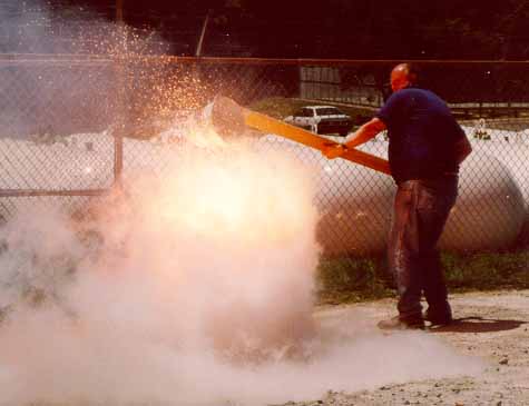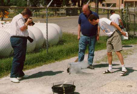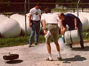 July 2, 1996. Indianapolis Star showed up for a photo shoot which ran on their July 4 issue. These pictures here were taken by "by standers" and not the Indianapolis Star. Yes, those are really "propane" tanks in the background, however, they are new and have never been filled with propane. They contain nonflammable "dry nitrogen". Click on images to see larger copies.