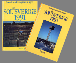 Böcker som kan beställas från Svenska Solgruppen. 1. Bygg själv din Solfångaranläggning. Klaus Lorenz . Boken beskriver ingående alla aspekter av solvärmesystem samt innehåller detaljerad beskrivning på solfångaren LESOL3. ("ett måste för självbyggaren"). 2. Svenska Solenergiföreningens årsböcker årg. 1991-1996 Solsverige-biblioteket är en unik kunskaps och inspirationskälla med totalt över 800 sidor för dig som vill orientera dig i solenergin och dess miljömässiga och tekniska och ekonomiska möjligheter i dagens Svenska energisystem. I böckerna medverkar de främsta experterna i Sverige på solvärme och solel.Varje bok innefattar c:a 150 sidor. Klicka här för innehållsförteckningar För prisuppgifter och beställning kontaktar du någon av medlemmarna i Svenska solgruppen med ett mail eller fax. |