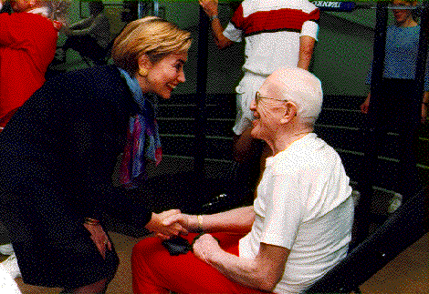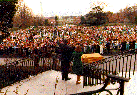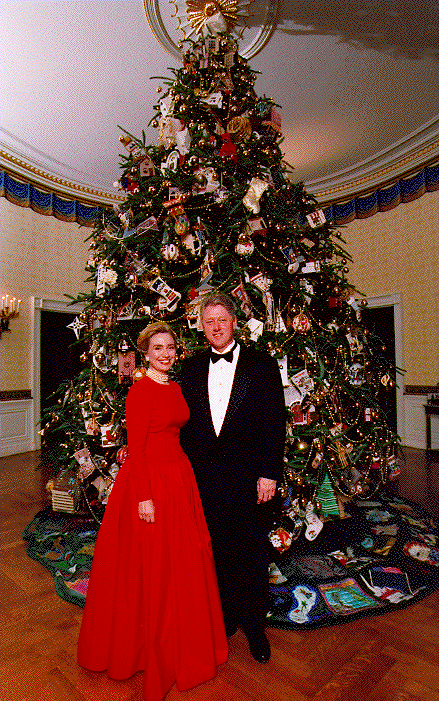 the President and Mrs. Clinton show off the 1995 White House Christmas