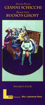 Gianni Schicchi is Puccini's great comic opera. Based on an incident from Dante's Inferno, this one-act opera is the last and most successful of three operas that make up Puccini's triptych, Il trittico. The story begins in medieval Florence as a group of greedy relatives call on Gianni Schicchi to fix the last will and testament of Buoso Donati. But Gianni gets the last laugh! Gianni Schicchi delivers rousing comedy as well as the unforgettable aria "O mio babbino caro".