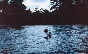 If this river was flowing I would be instantly swept away to a stupid death and my lunch would be all wet. Fortunately for the moment there is only a slight upriver current since I'm crossing at high tide where it runs into the sea. I've also just observed several natives cross ahead of me. While they assured me it was safe, I wasn't entirely convinced. The tide could have reversed at any moment, and what is the meaning of "safe" to a villager surrounded by daily tragedy in a developing country?