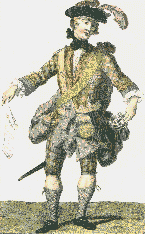 This is a somewhat romanticised etching of Prince Charles Edward Stuart ("Bonnie Prince Charlie") wearing the dress of the scottish nobility from the 18th Century.