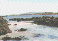 That enemy silenced, we bivouacked at St. Columba's Bay. The children in the party waded into the sea and a seal surfaced like a fuzzy periscope to investigate the din. As the surf coaxed a gentle cobblestone melody out of the rocky beach, I recalled an earlier visit when the rocks had been shrouded in mist that offered tantalizing glimpses of a sailboat navigating the troubled shore.