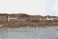The ferry today deposits passengers on a quay in St. Ronan's Bay where a militia of dormered cottages greets them in proper military style. These village homes stand at attention, their eyebrows peaked and their eyes trained resolutely on the pink granite rocks of Mull. Visitors generally have their eyes trained on the island's ancient ruins and head quickly for the Abbey north of the village.