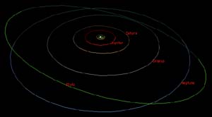 En planets bane om Solen er en næsten cirkelformet ellipse. Der er ikke den store forskel på størrelsen af ellipsens storakse og ellipsens lilleakse. En ellipse har i modsætning til cirklen (et særligt tilfælde af en ellipse) to brændpunkter. Kepler's 1. lov.