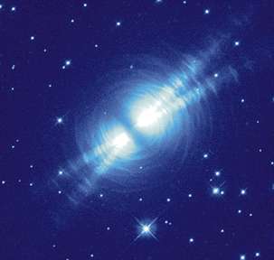 "Ægtågen", også kaldet CRL2688, befinder sig omtrent 3000 lysår fra Jorden. Rumteleskopet har fotograferet objektet i en bølgelængde, der svarer til rødt lys, og billedet viser blandt andet et par mystiske lysstråler, som udspringer fra en stjerne, skjult i et netværk af utallige lysbuer. Optagelsen kaster nyt lys over den langsomme dødsproces, som en stjerne af Solens type gennemgår. Centralstjernen i CRL2688 var en rød kæmpestjerne for nog-le få hundrede år siden, inden den begyndte at danne en enorm sky af kosmisk støv og gas. Skyen udvider sig med en hastighed af 20 km i sekundet. En tæt kokon af støv (det mørke bånd i billedets centrum) indhyller stjernen og skjuler den. Lys fra stjernen undslipper i de områder, hvor kokonens struktur er mindre tæt, og dette reflekteres af støvpartikler i skyen. Objekter af denne type er sjældne, fordi de befinder sig i en udviklingsmæssig fase, som kun varer mellem 1000 og 2000 år. Men måske indeholder de løsningen på spørgsmålet om, hvordan røde kæmpestjerner omdannes til planetariske tåger.