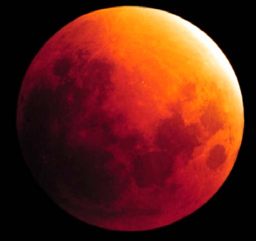 Hvis hele Månen befinder sig i Jordens kerneskygge, er formørkelsen total. Månen farves da rød, idet en smule af sollyset brydes i Jordens atmosfære.