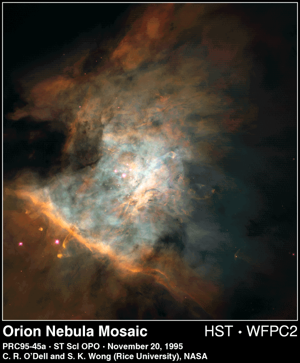 Billedudsnittet viser 2,5 lysår af de central dele af Oriontågen og er sammensat som