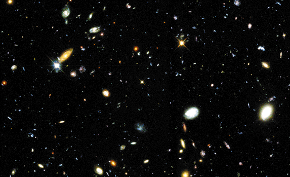 Adskillige hundrede galakser, som man ikke kendte eksistensen af, er synlige i det "dybeste" billede af universet, man nogensinde har optaget. Ud over de klassiske spiral- og ellipseformede galakser er der en stor variation af andre galakseformer og farver, som alle er vigtige brikker i puslespillet om at forstå universets udvikling. Nogle af disse er måske blevet dannet mindre end 1 milliard år efter det såkaldte "Big Bang", tidspunktet, hvor hele universet opstod i en kæmpeeksplosion.