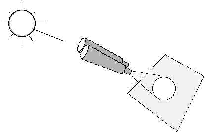 All observers, whether teachers, students, amateur or professional astronomers, must remember NEVER EVER TO LOOK THROUGH AN UNSHIELDED TELESCOPE AIMED AT THE SUN! The famous Italian scientist Galileo unfortunately did so and became blind. With our present high-transmission telescopes, eye damage will occur within less than a second. The tremendous heating power of sunlight is easily demonstrated using a magnifying lens (a burning glass).
