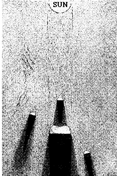 Do you know that this pinhole effect may also be seen in nature? A leafy forest may absorb almost all the sunlight, only leaving a few rays to pass through occasional holes. The effect visible on the ground will be like this: