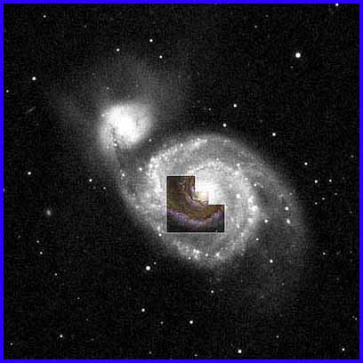 Spiralgalaksen M51 befinder sig i stjernebilledet Jagthundene i en afstand af 23 millioner lysår fra os. Galaksens centralområde er kun omkring 80 lysår i diameter og har en samlet lysstyrke på omkring 100 millioner gange Solens. Astronomerne anslår, at M51 er omkring 400 millioner år gammel og har en masse, som er 40 millioner gange større end vores egen Sols. Da koncentrationen af stjerner er mere end 5000 gange højere end i Solens omegn her i Mælkevejssystemet, betyder det, at vi ville leve under en konstant oplyst himmel, hvis man tænkte sig, at Solsystemet befandt sig i M51.