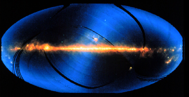 Mælkevejens opdeling blev rigtig synlig med COBEs (Cosmic Microwave Background Explorer) observationer af de koldeste gas- og støvskyer i Mælkevejens. Billedet her er nok det tætteste vi kommer på et overblik over Mælkevejen i mange år.