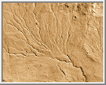 However, these valley networks are less developed than typical terrestrial drainage systems, with the Martian examples lacking small-scale streams feeding into the larger valleys. Because of the absence of small-scale streams in the Martian valley networks, it is thought that the valleys were carved primarily by ground water flow rather than by runoff of rain. Although liquid water is currently unstable on the surface of Mars, theoretical studies indicate that flowing groundwater might be able to form valley networks if the water flowed beneath a protective cover of ice. Alternatively, because the valley networks are confined to relatively old regions of Mars, their presence may indicate that Mars once possessed a warmer and wetter climate in its early history. (Image Credit: Calvin J. Hamilton; Caption: LPI)
